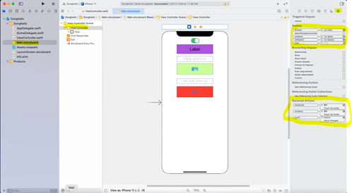 Connections Inspector로 Outlet이나 Action이 하나씩 잘 연결되어있는지 아니면 연결이 안 되어있는지 확인이 필요
