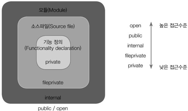 โผ internal ์ ๊ทผ์ ํด๋น ๋ชจ๋์ ๋ชจ๋ ์์ค ํ์ผ ๋ด์์ ์ฌ์ฉ๋์ง๋ง, ํด๋น ๋ชจ๋ ์ธ๋ถ์ ์์คํ์ผ์์๋ ์ฌ์ฉ๋์ง ์๋๋ก ํ๋ค. ์ผ๋ฐ์ ์ผ๋ก App์ด๋ Framework์ ๋ด๋ถ ๊ตฌ์กฐ๋ฅผ ์ ์ํ ๋ internal ์ ๊ทผ์ ์ฌ์ฉํ๋ค.